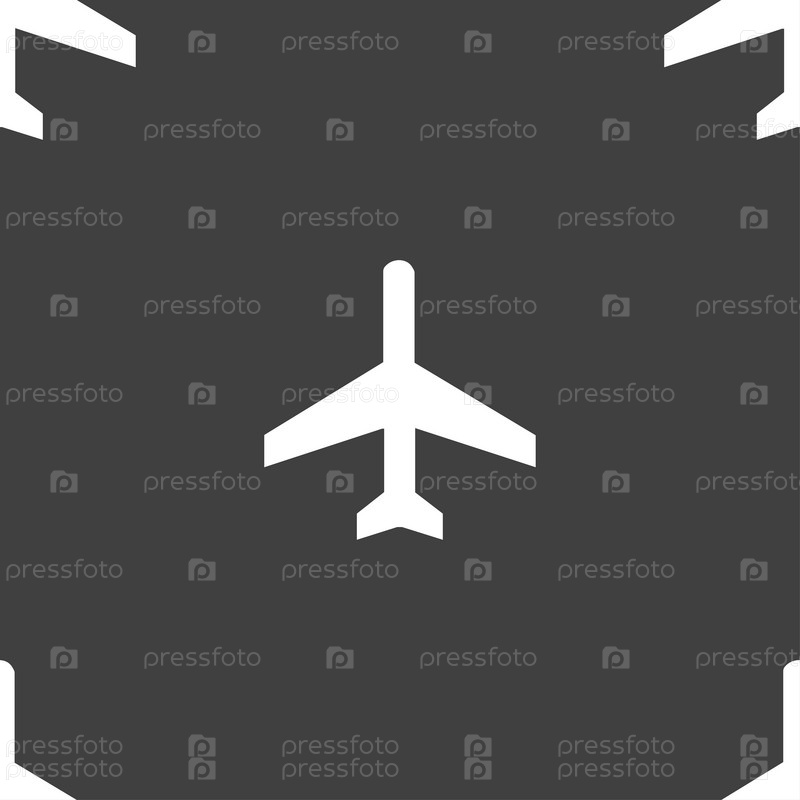 Самолет значок знак. Бесшовный узор на сером фоне. Вектор
