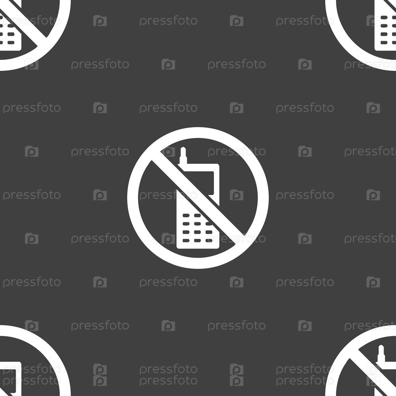 Мобильный телефон запрещается значок знак. Бесшовный узор на сером фоне. Вектор