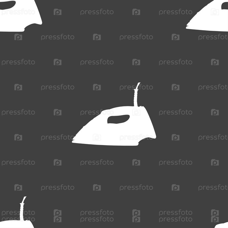 Утюг на значок знак. Бесшовный узор на сером фоне. Вектор