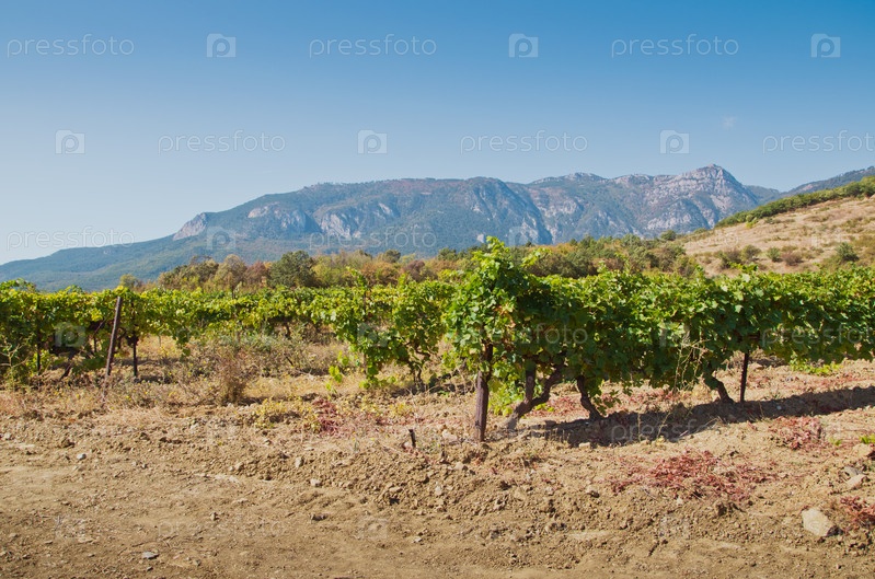Виноградник, горы и голубое небо