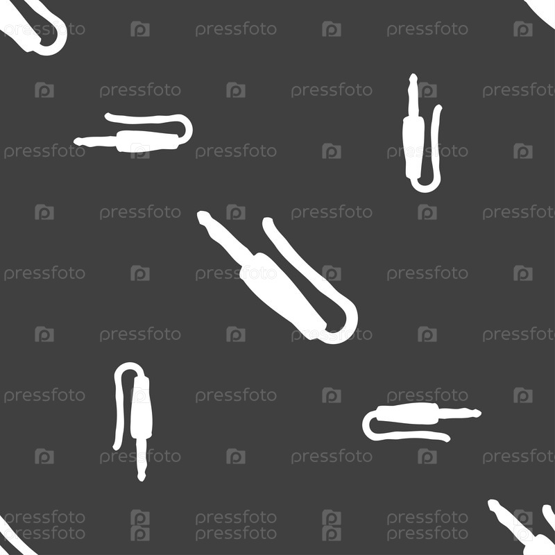 Разъем мини-джек значок знак. Бесшовный узор на сером фоне. Вектор