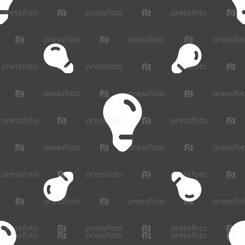 Лампочки, идея значок знак. Бесшовный узор на сером фоне. Вектор