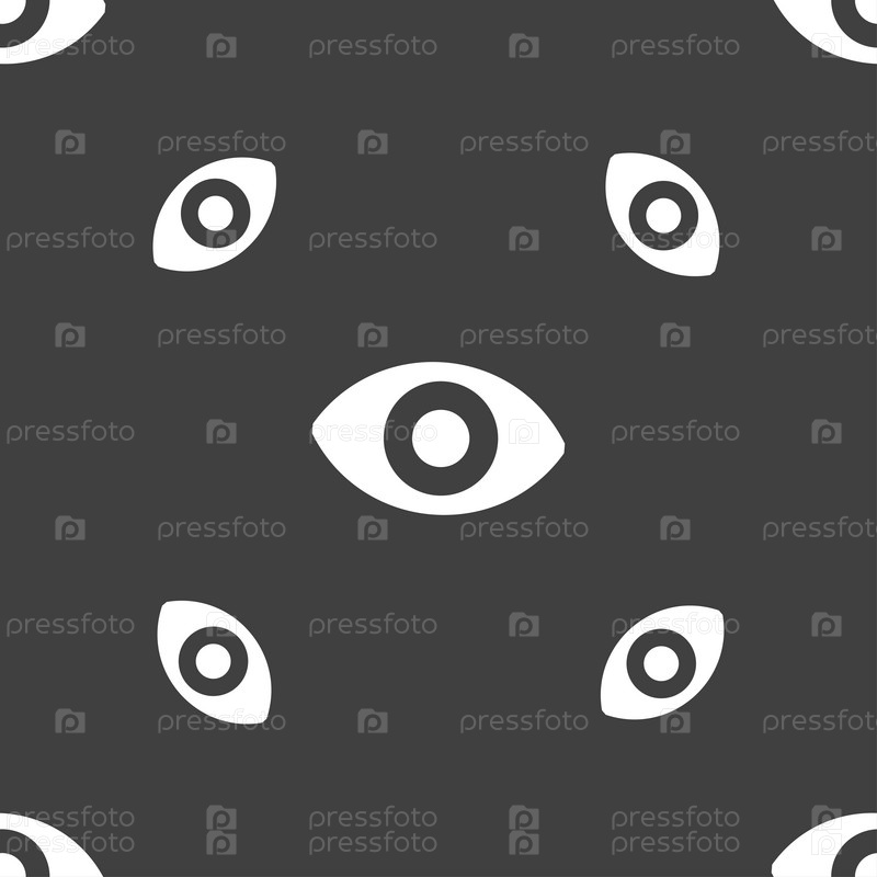 Шестое чувство, знак значок глаза. Бесшовный узор на сером фоне. Вектор