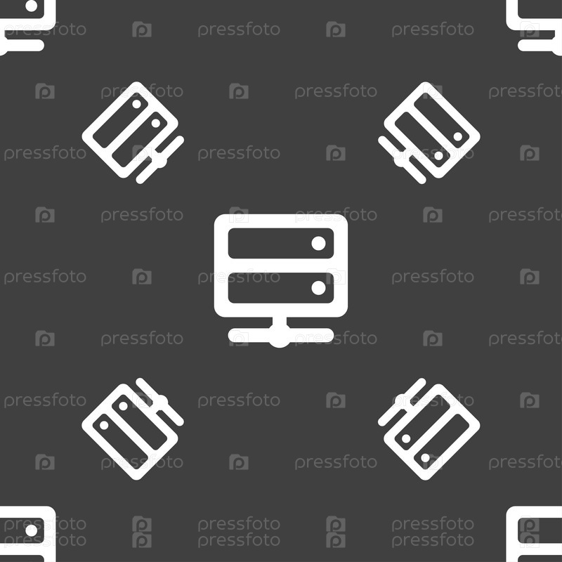Сервер значок знак. Бесшовный узор на сером фоне. Вектор