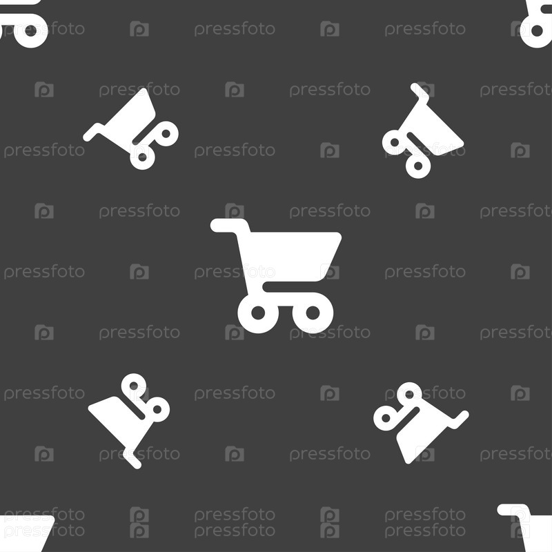 Торговый знак значок Корзина. Бесшовный узор на сером фоне. Вектор