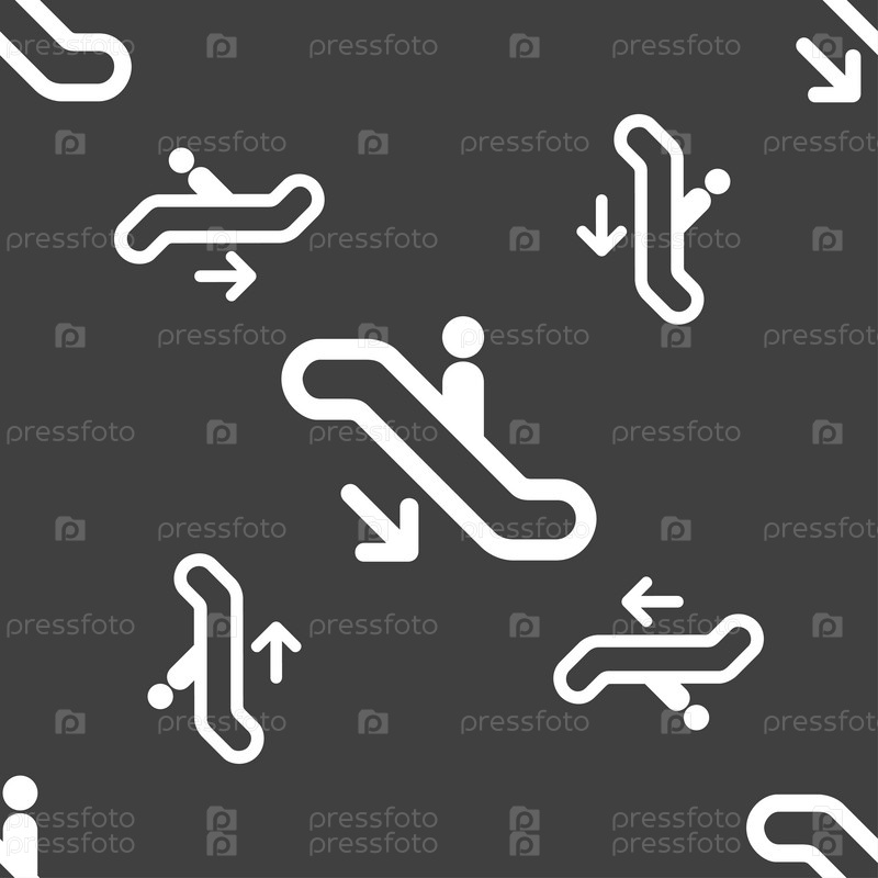 Лифт, эскалатор, лестница значок знак. Бесшовный узор на сером фоне. Вектор