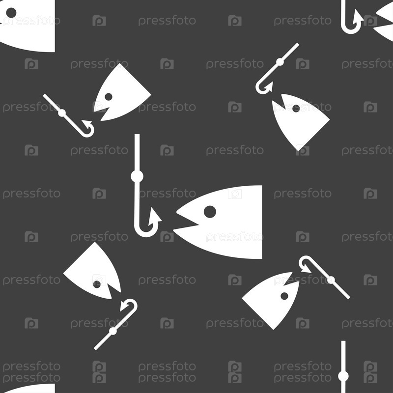 Рыбалка значок знак. Бесшовный узор на сером фоне. Вектор