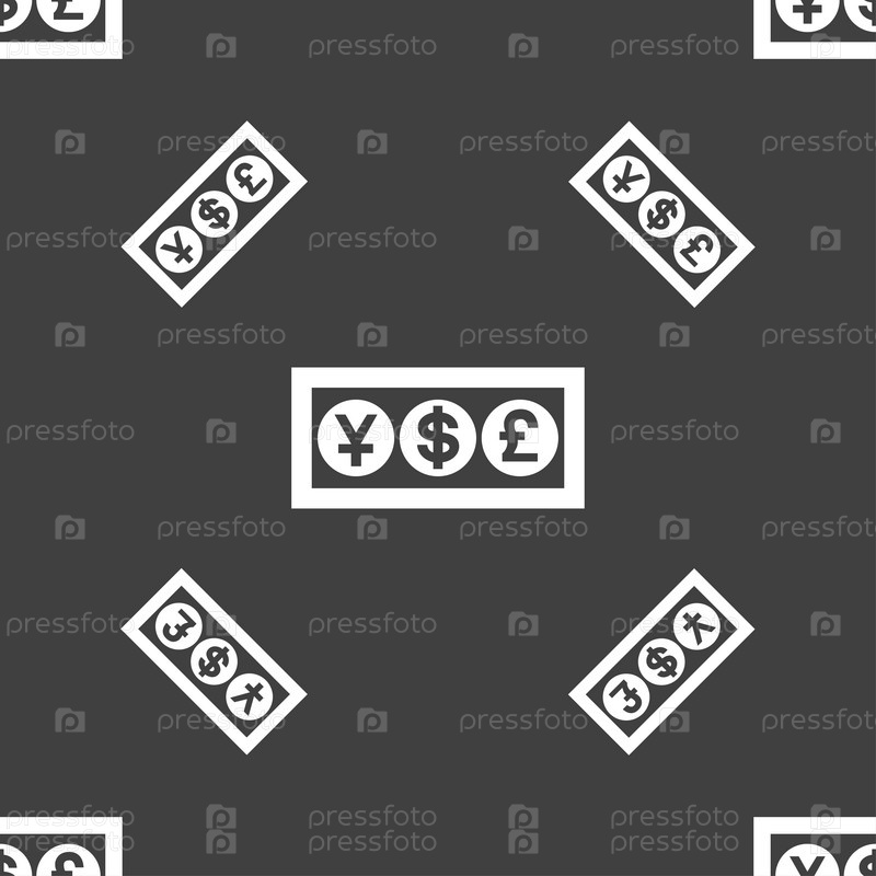 Знак значок валюты наличными. Бесшовный узор на сером фоне. Вектор