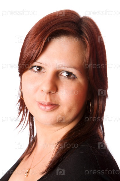 Портрет молодой рыжеволосой женщины, изолированной на белом
