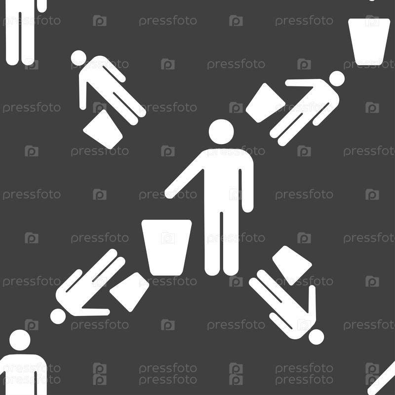 Выбросите мусор значок знак. Бесшовный узор на сером фоне. Вектор