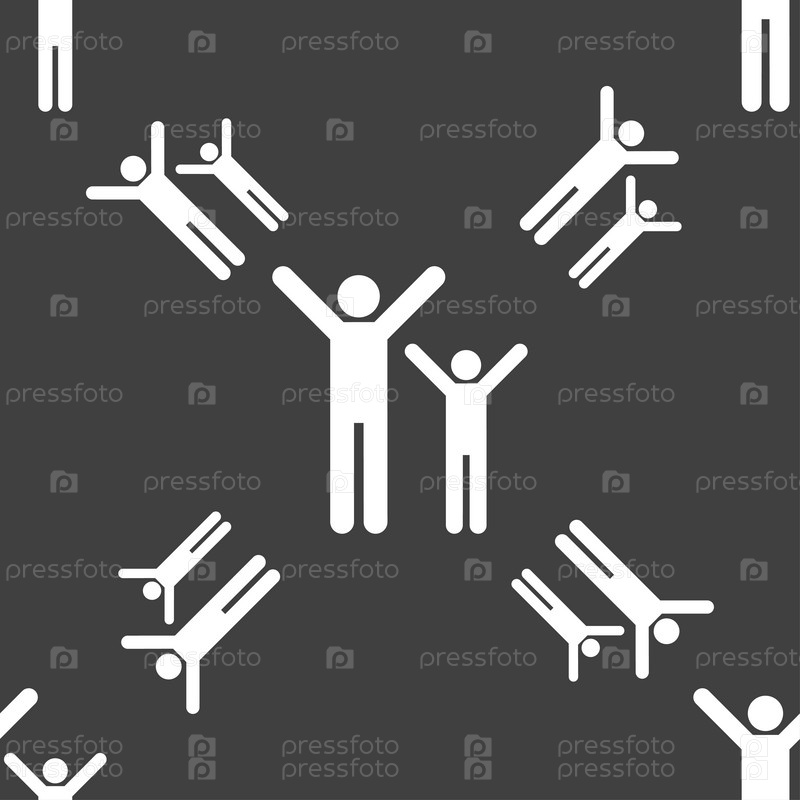 Счастливые семьи значок знак. Бесшовный узор на сером фоне. Вектор