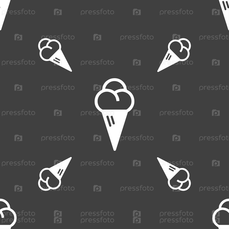 Мороженого значок знак. Бесшовный узор на сером фоне. Вектор