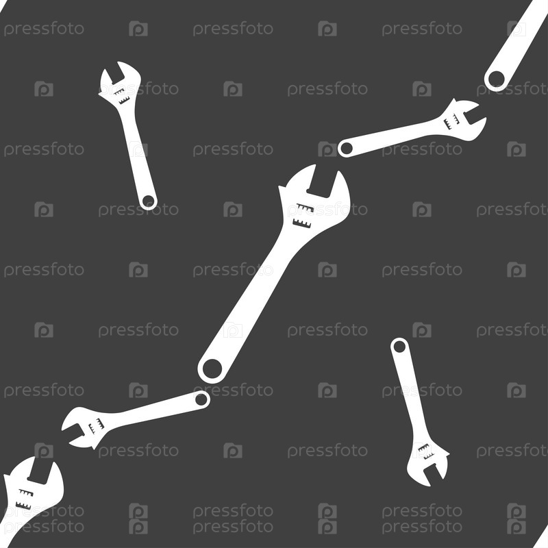 Гаечный ключ значок знак. Бесшовный узор на сером фоне. Вектор