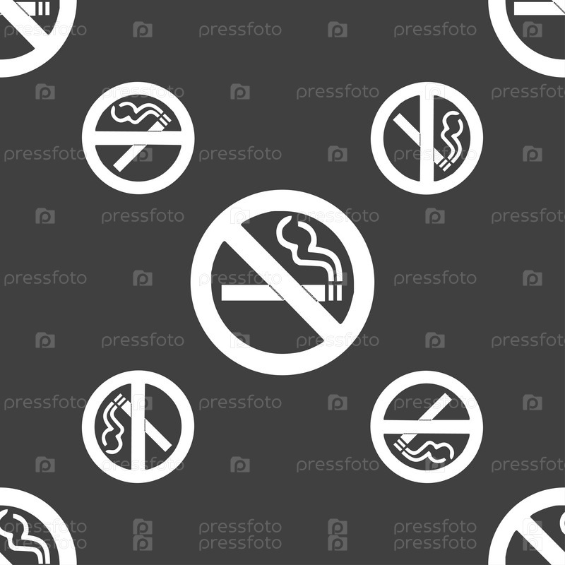Знак не курить в значок. Бесшовный узор на сером фоне. Вектор
