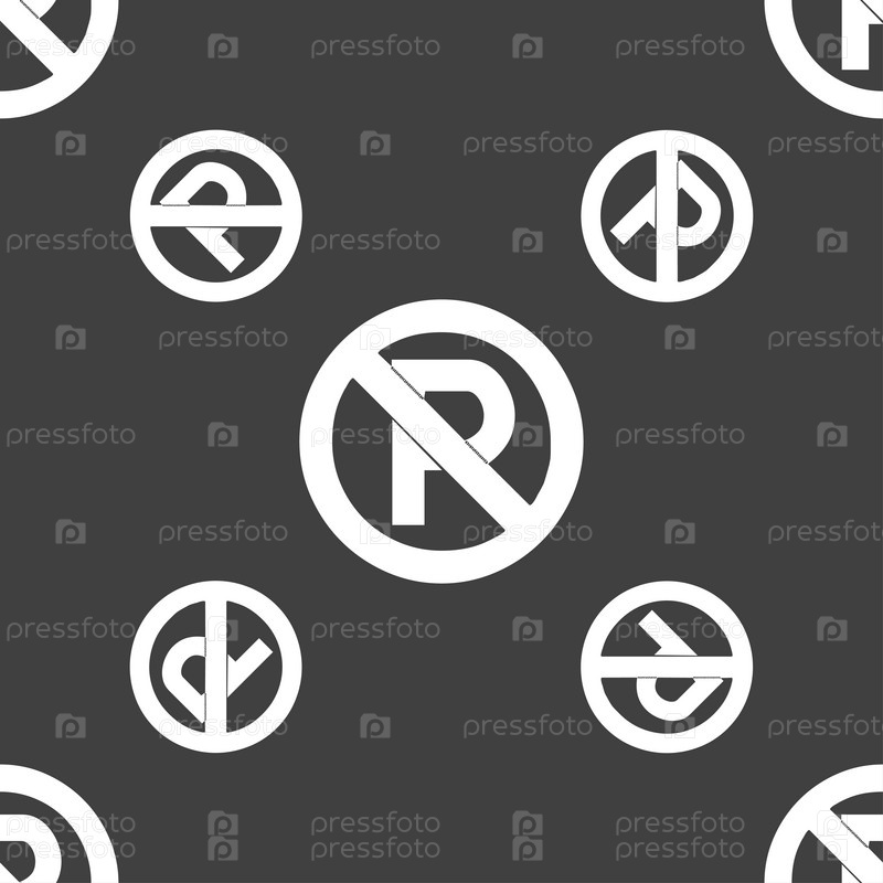 Не парковка значок знак. Бесшовный узор на сером фоне. Вектор