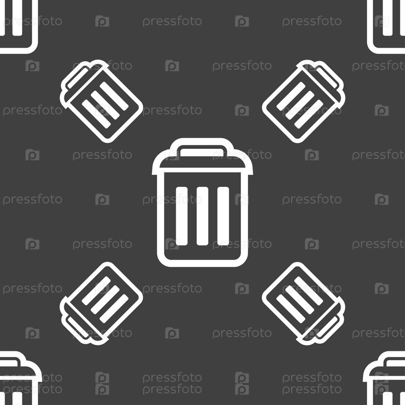 Знак значок корзины. Бесшовный узор на сером фоне. Вектор