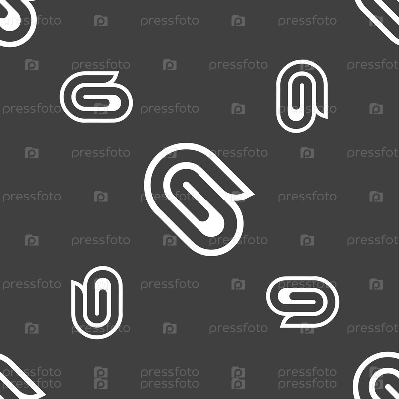 Знак значок скрепки. Бесшовный узор на сером фоне. Вектор