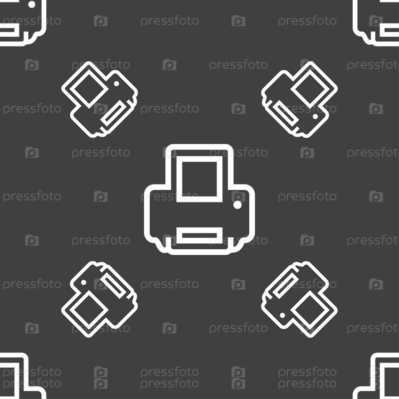 Печать значок знак. Бесшовный узор на сером фоне. Вектор