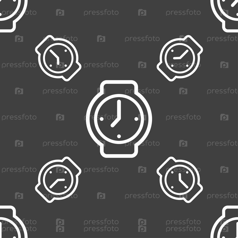 Часы значок знак. Бесшовный узор на сером фоне. Вектор