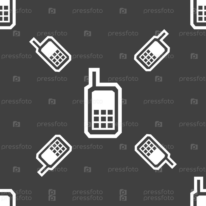 Мобильный телефон значок знак. Бесшовный узор на сером фоне. Вектор