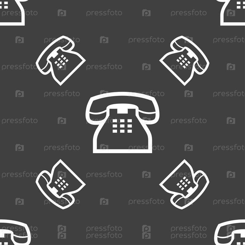 Ретро телефон телефон значок знак. Бесшовный узор на сером фоне. Вектор