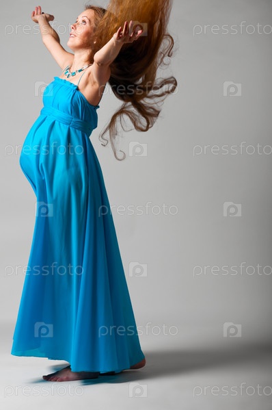 Беременная женщина на сером фоне