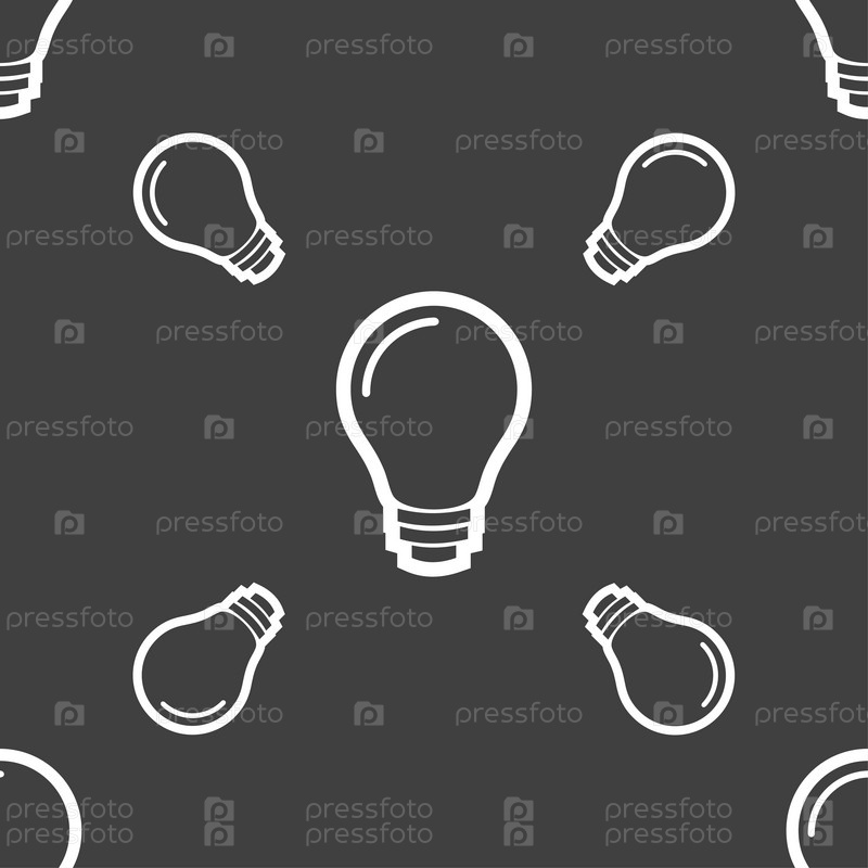 Свет лампы значок знак. Бесшовный узор на сером фоне. Вектор