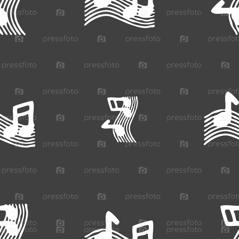 Ноты, музыка, рингтон значок знак. Бесшовный узор на сером фоне. Вектор
