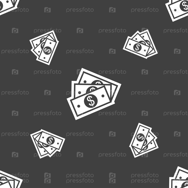 Значок знак доллара США. Бесшовный узор на сером фоне. Вектор