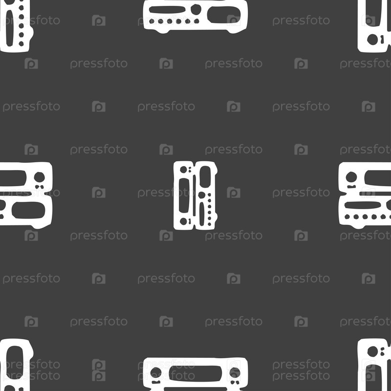 Радиоприемник, усилитель значок знак. Бесшовный узор на сером фоне. Вектор