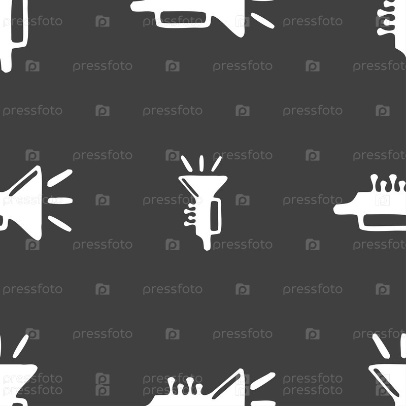 Труба, латуни инструмент значок знак. Бесшовный узор на сером фоне. Вектор
