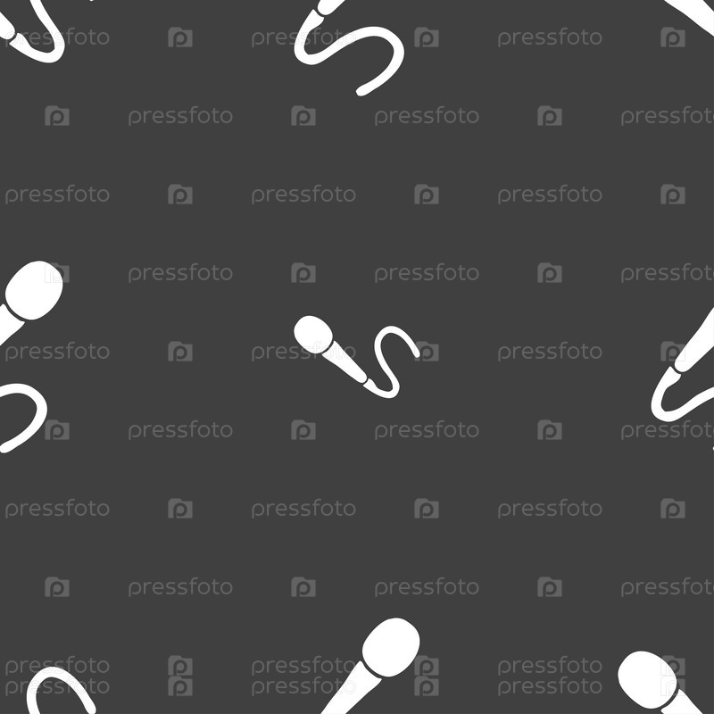Значок микрофона знак. Бесшовный узор на сером фоне. Вектор