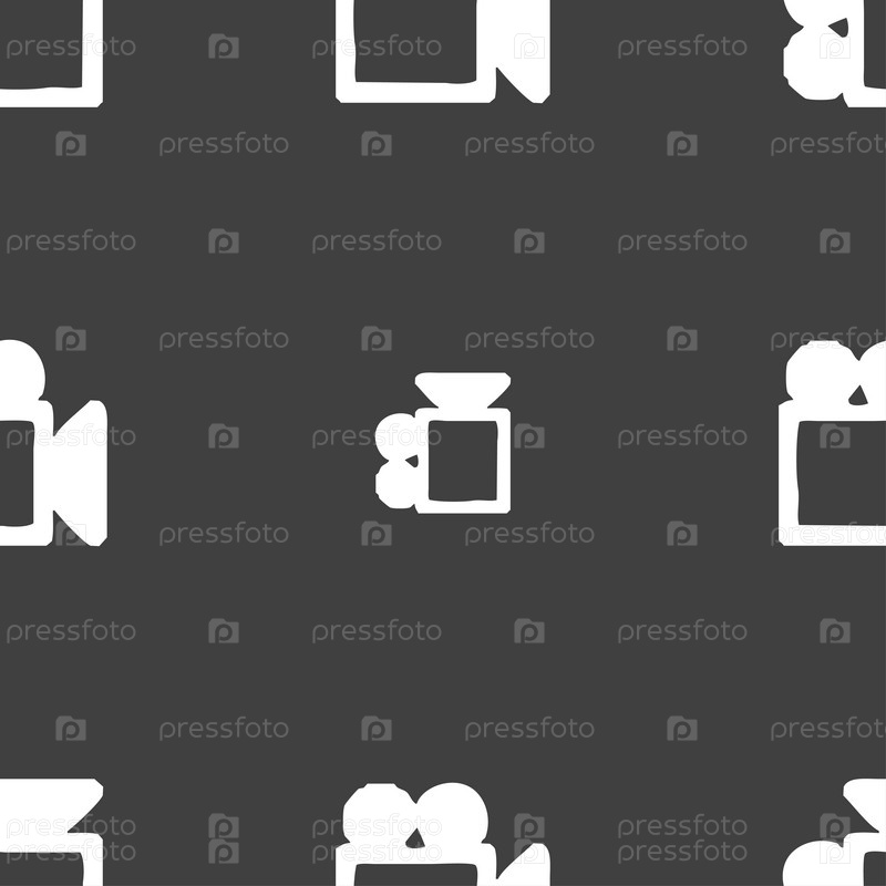 Видеокамера значок знак. Бесшовный узор на сером фоне. Вектор