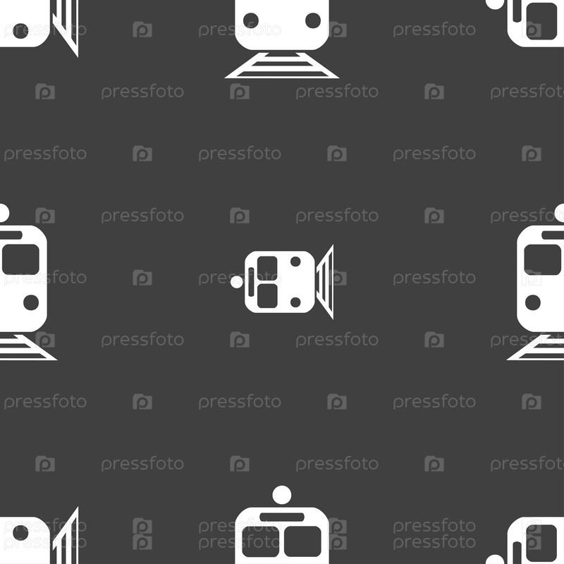 Поезд значок знак. Бесшовный узор на сером фоне. Вектор