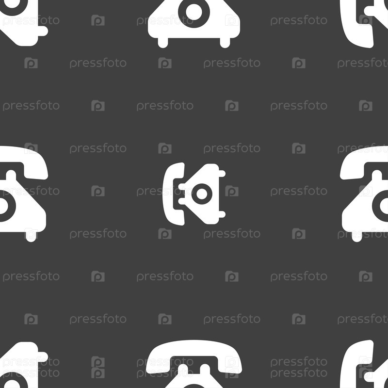 Ретро телефон телефон значок знак. Бесшовный узор на сером фоне. Вектор