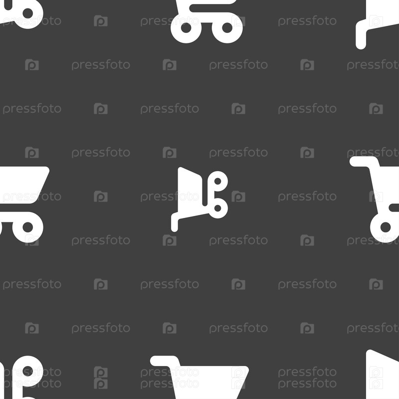Торговый знак значок Корзина. Бесшовный узор на сером фоне. Вектор