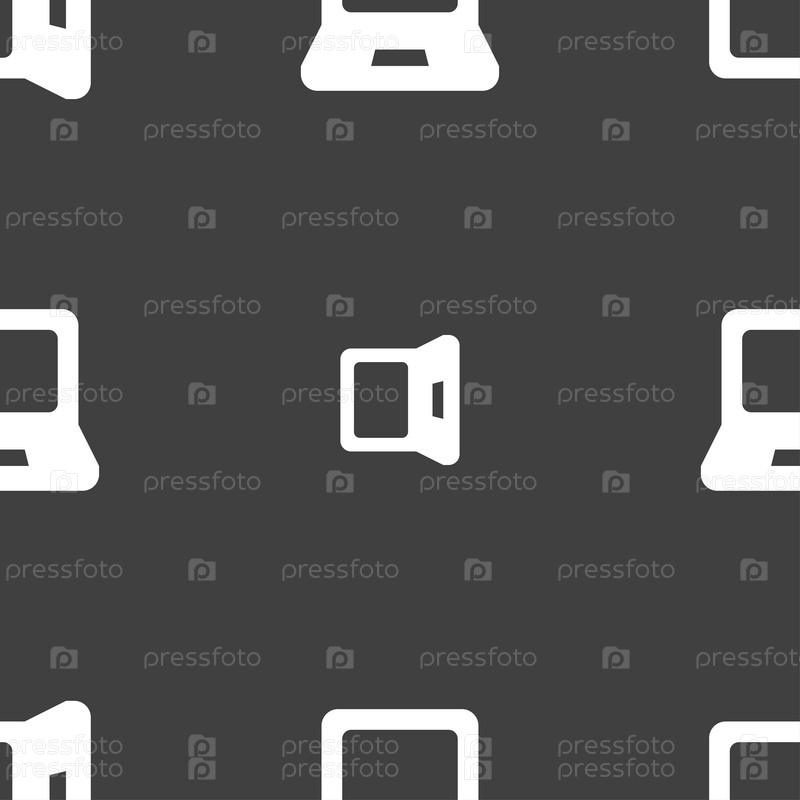 Ноутбук значок знак. Бесшовный узор на сером фоне. Вектор