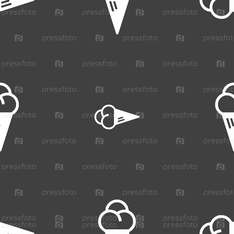 Мороженого значок знак. Бесшовный узор на сером фоне. Вектор