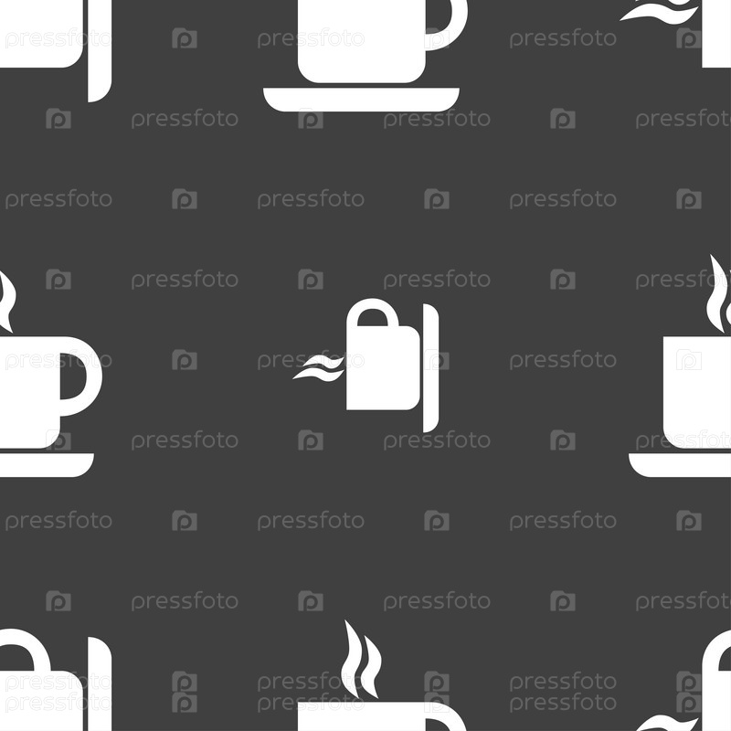 Кофе значок знак. Бесшовный узор на сером фоне. Вектор