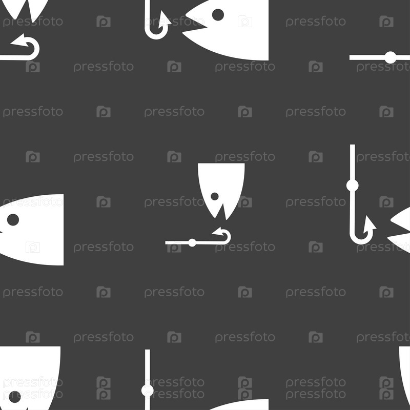Рыбалка значок знак. Бесшовный узор на сером фоне. Вектор
