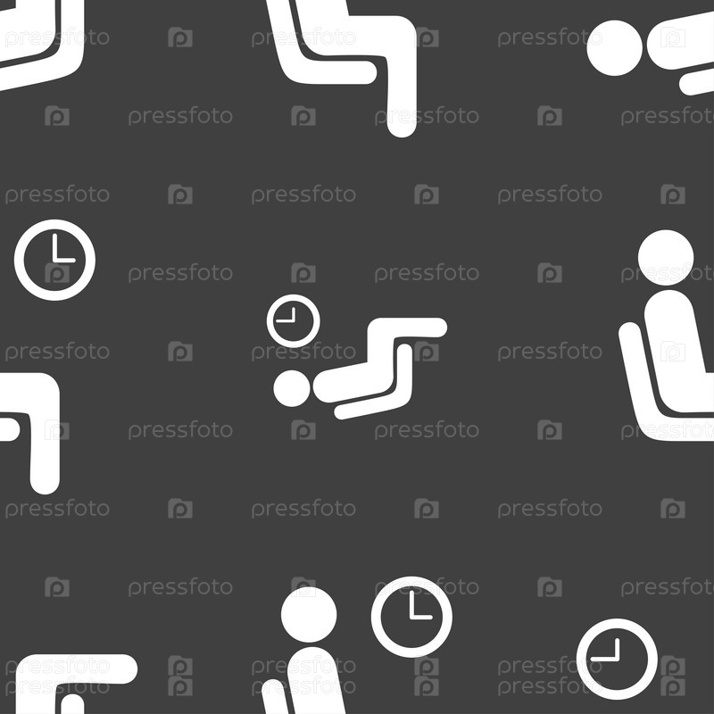 Ожидания значок знак. Бесшовный узор на сером фоне. Вектор