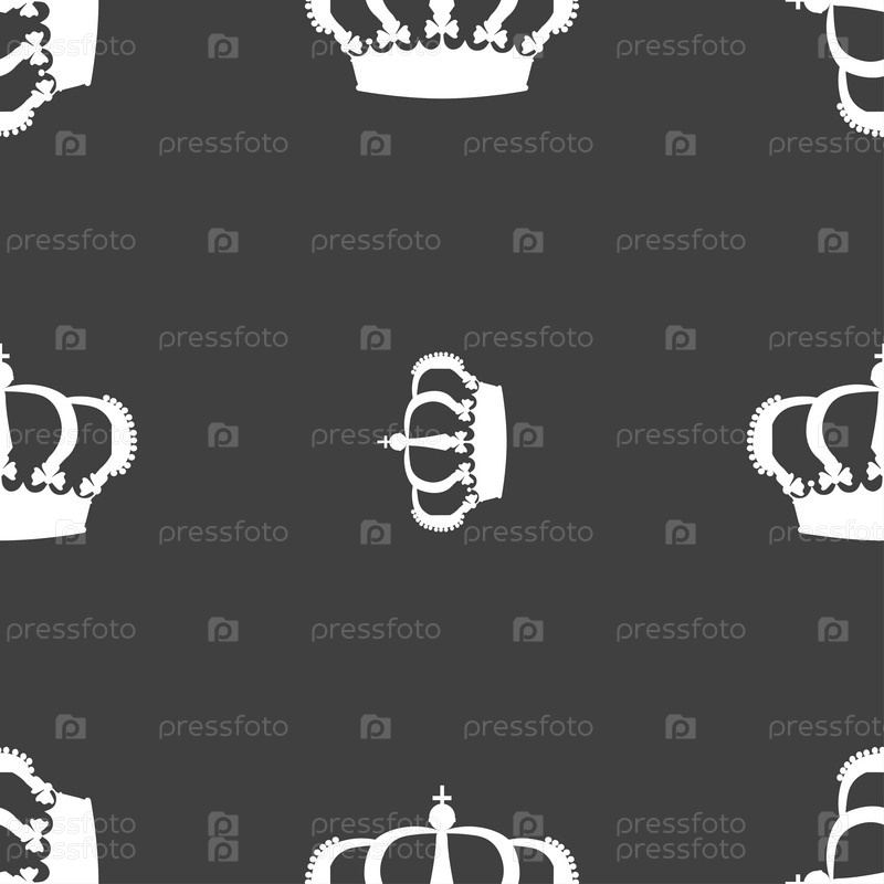 Корона значок знак. Бесшовный узор на сером фоне. Вектор