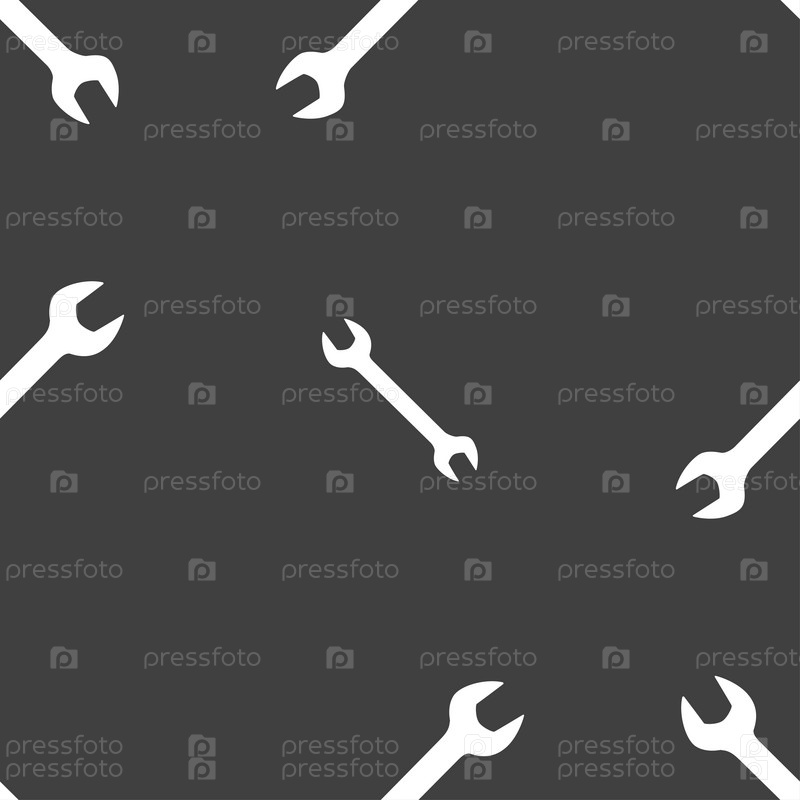 Гаечный ключ значок знак. Бесшовный узор на сером фоне. Вектор