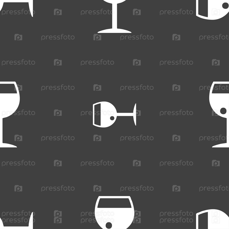 Стакан вина значок знак. Бесшовный узор на сером фоне. Вектор