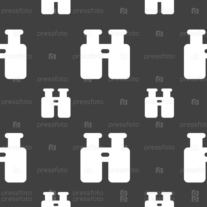Бинокль, поиск, найти информацию значок знак. Бесшовный узор на сером фоне. Вектор