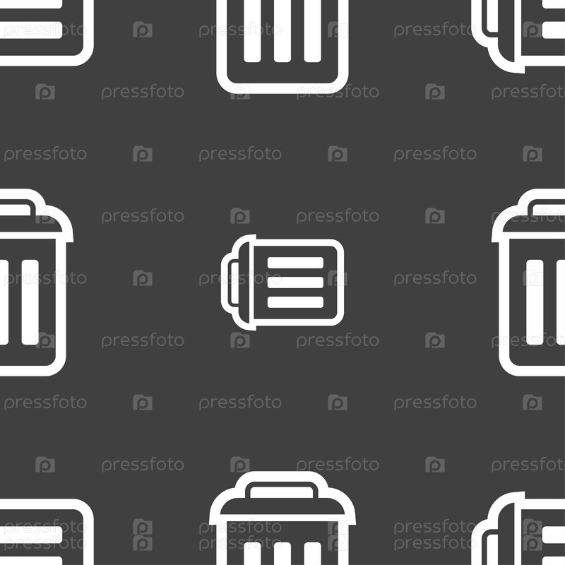Знак значок корзины. Бесшовный узор на сером фоне. Вектор