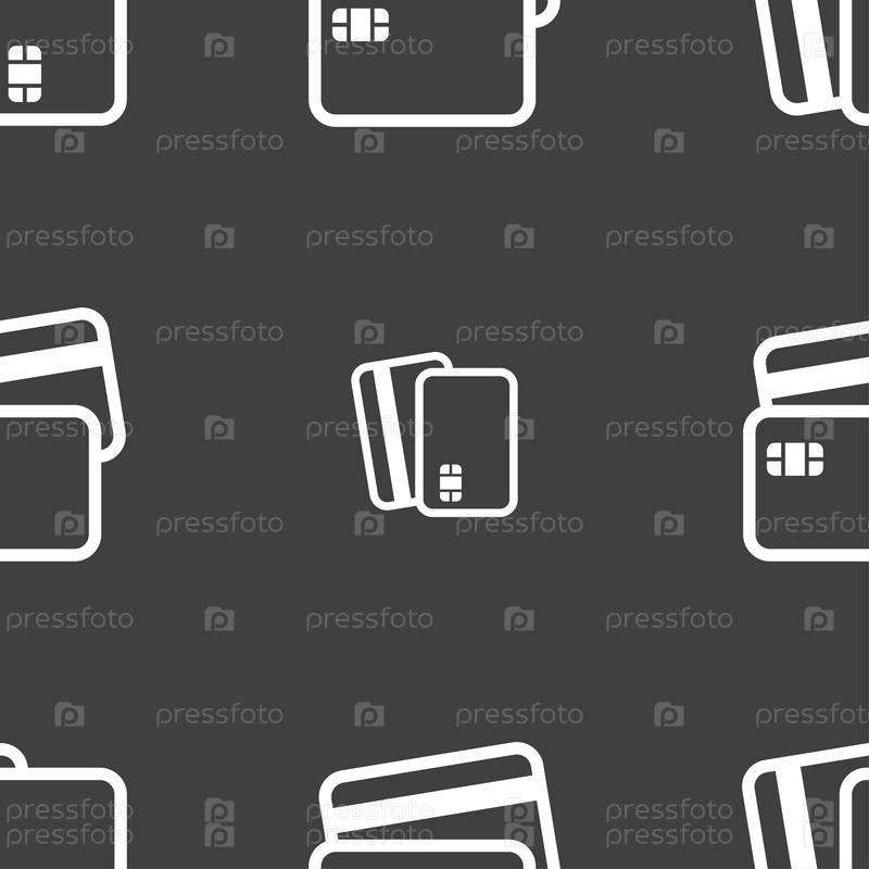Кредитной карты значок знак. Бесшовный узор на сером фоне. Вектор