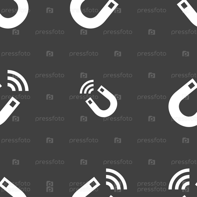 Магнит значок знак. Бесшовный узор на сером фоне. Вектор
