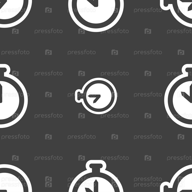 Секундомер значок знак. Бесшовный узор на сером фоне. Вектор