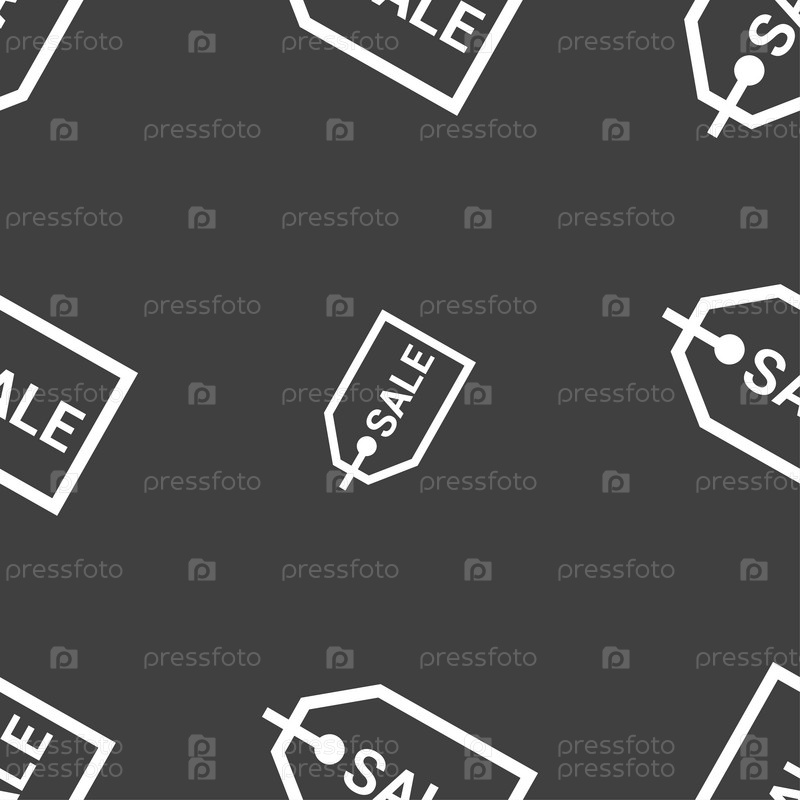 Продажа значок знак. Бесшовный узор на сером фоне. Вектор